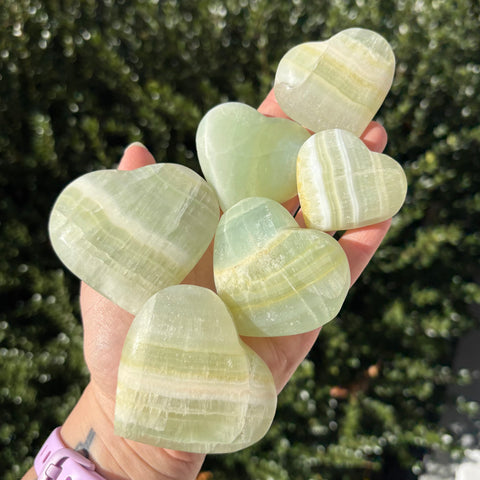 Pistachio calcite is a green form of calcite that is associated with the heart chakra. Pistachio calcite aids in patience, has calming energy, balances energy, brings luck, abundance, and enthusiasm for life.