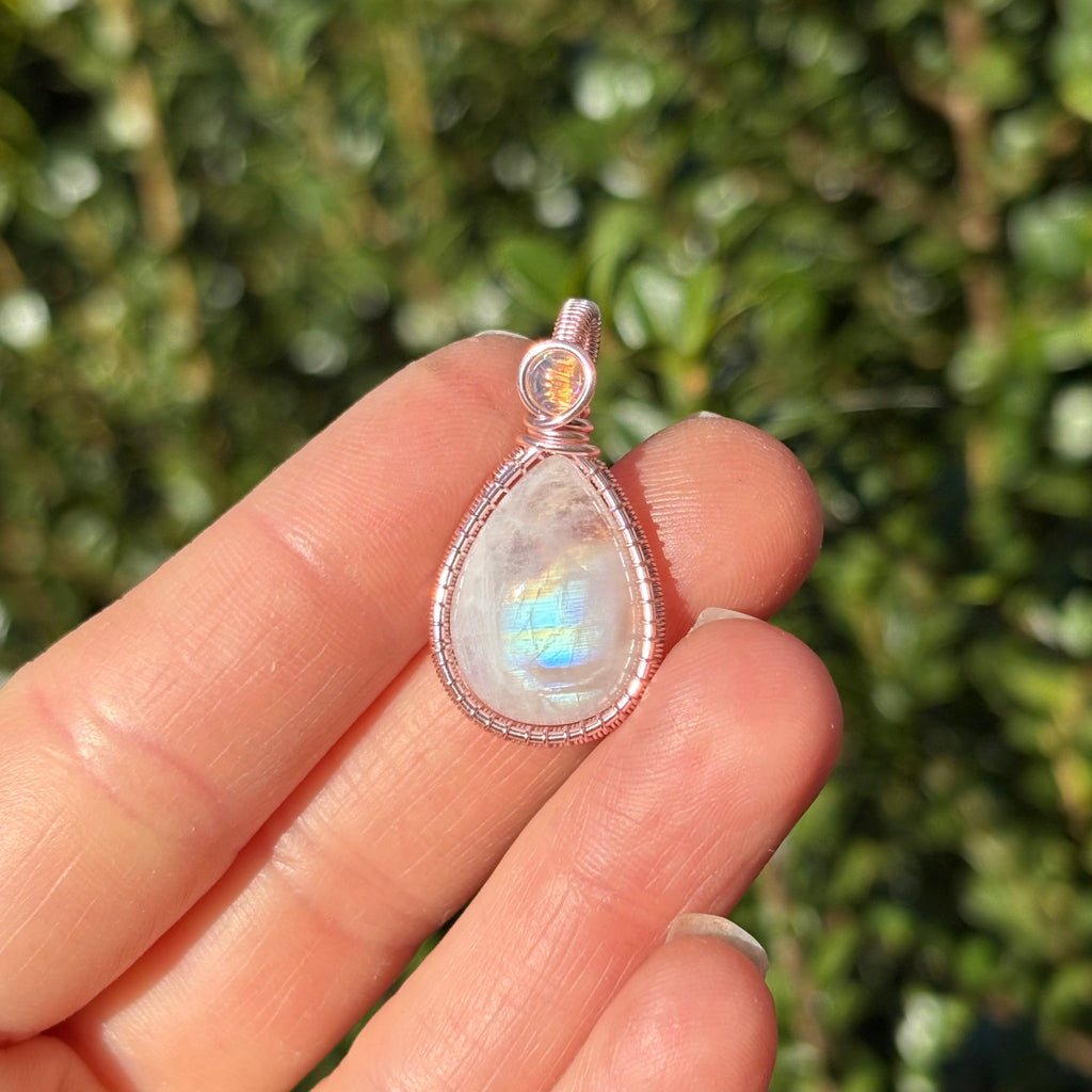 Rainbow Moonstone + Ethiopian Opal Pendant