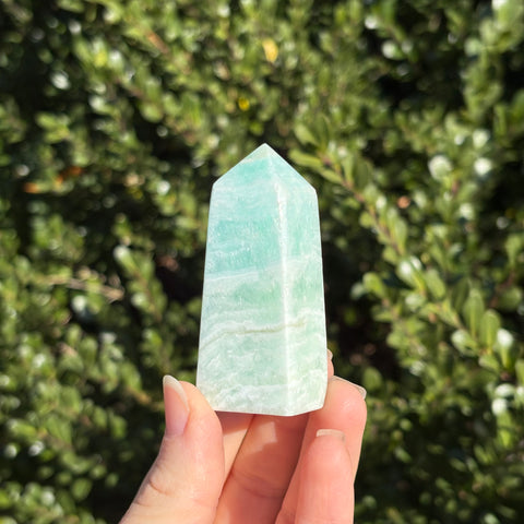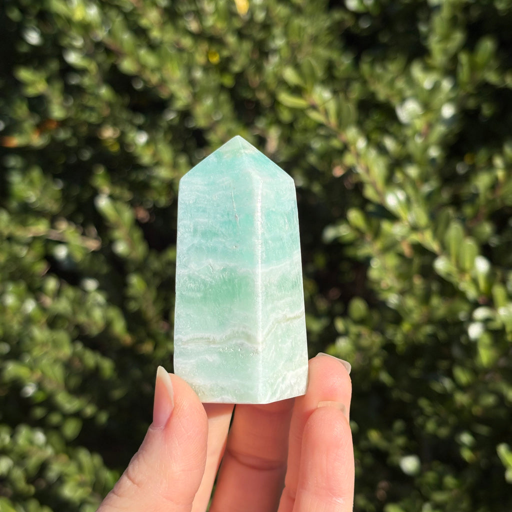 Caribbean Calcite is a unique and beautiful aqua colored calcite that is mined from Pakistan. It is associated with the throat chakra and aids in relaxation, releasing anxiety, intuition, and communication.