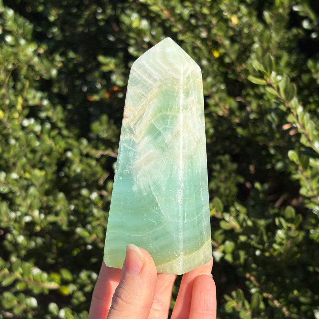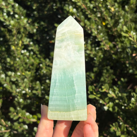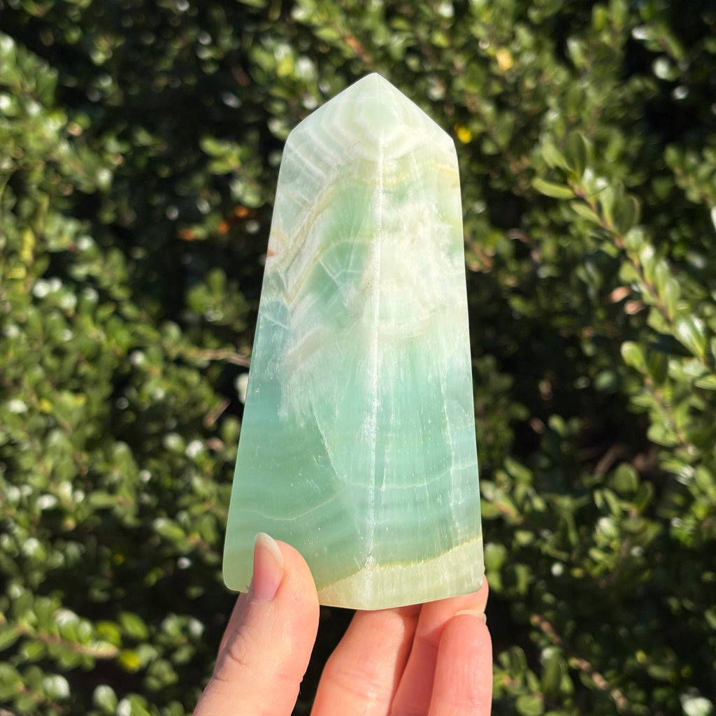 Pistachio calcite is a green form of calcite that is associated with the heart chakra. Pistachio calcite aids in patience, has calming energy, balances energy, brings luck, abundance, and enthusiasm for life.