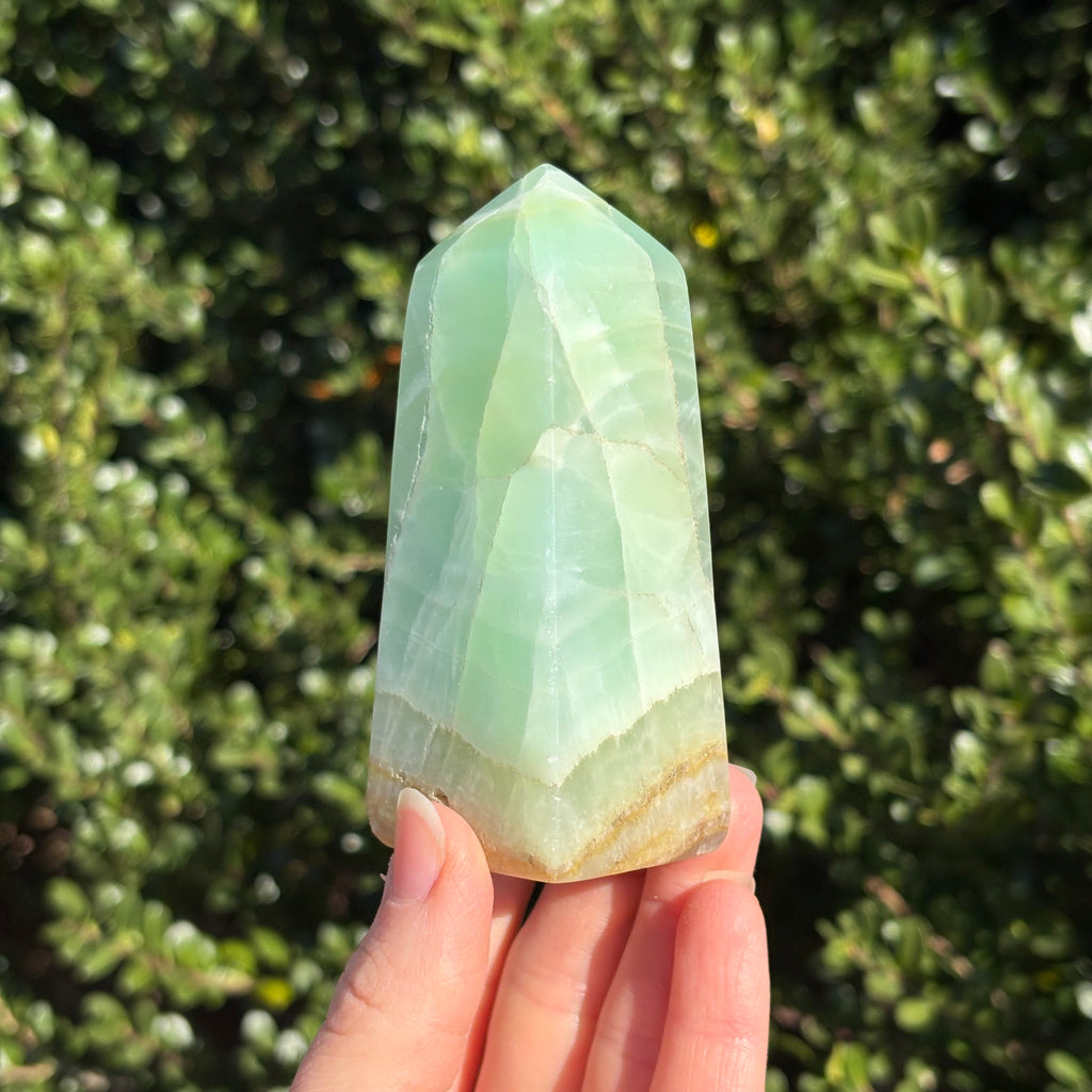 Pistachio calcite is a green form of calcite that is associated with the heart chakra. Pistachio calcite aids in patience, has calming energy, balances energy, brings luck, abundance, and enthusiasm for life.