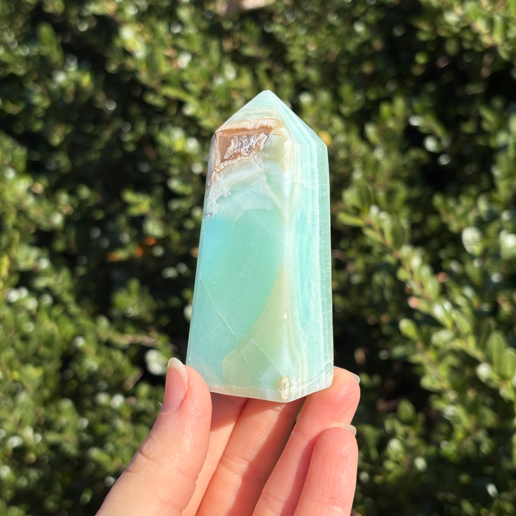 Pistachio calcite is a green form of calcite that is associated with the heart chakra. Pistachio calcite aids in patience, has calming energy, balances energy, brings luck, abundance, and enthusiasm for life.