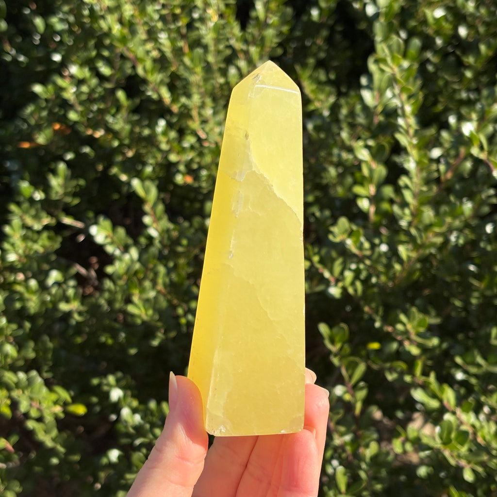 Lemon calcite is a bright yellow variety of calcite that is associated with the solar plexus chakra. Lemon calcite aids in self confidence, positive energy, happiness, luck, and abundance.