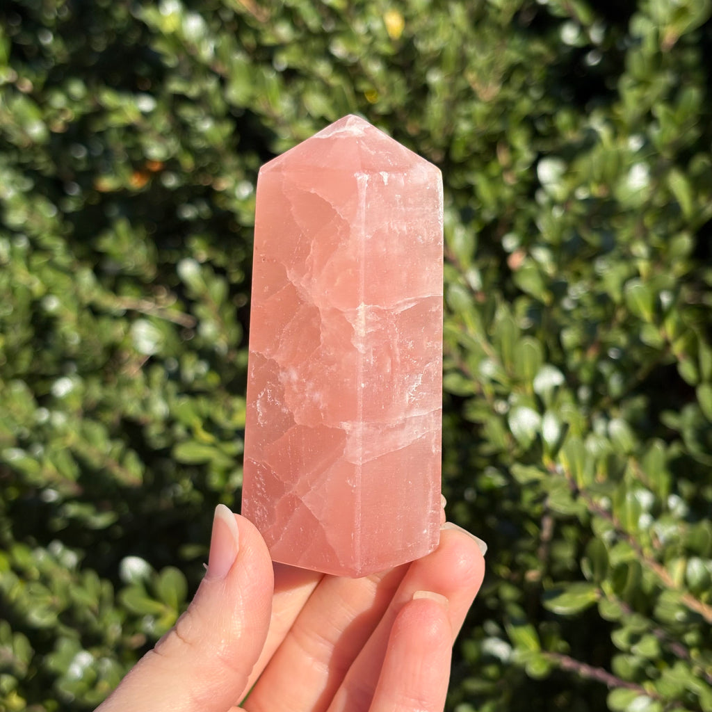 Rose calcite is a reddish variety of calcite that is associated with the heart chakra. It assists in heart and mind communication and cleanses old emotional wounds. It can help incite positive changes in your life and bring in new opportunities.